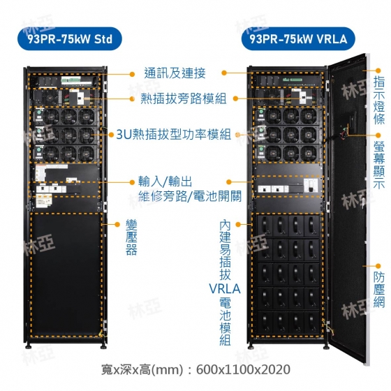 | 標準與認證 | IEC 62040-2、IEC 62040-1、IEC 62040-3、BSMI、消防認證 | |||