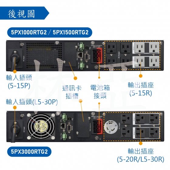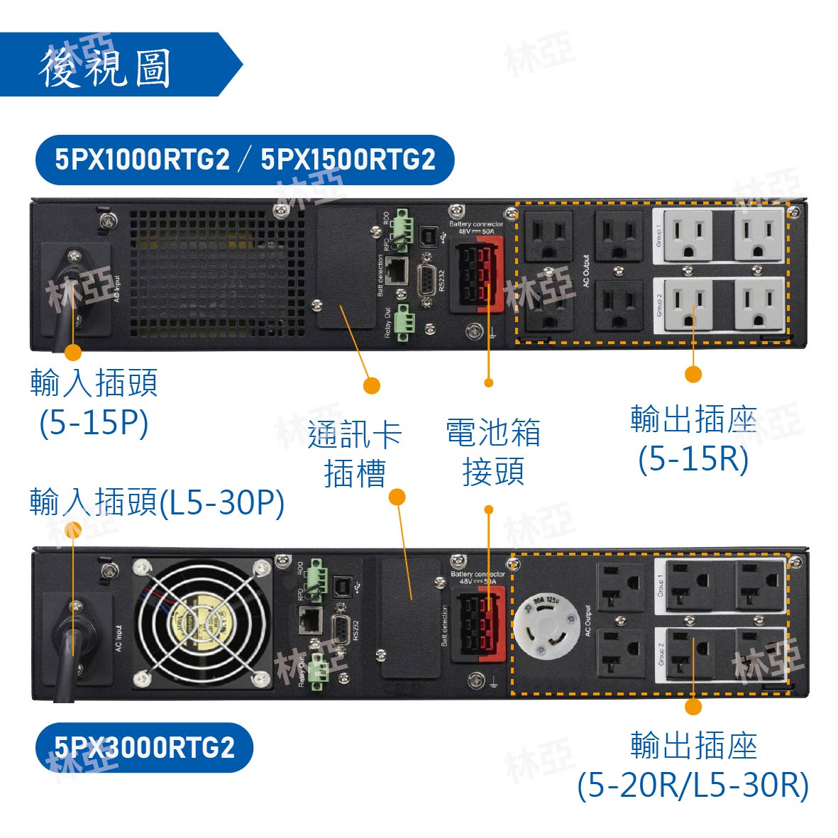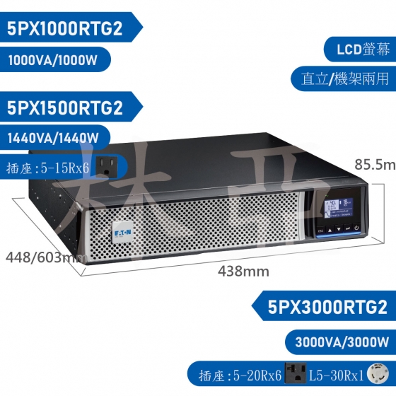 | 型號 | 5PX1000RTG2 | 5PX1500RTG2 | 5PX3000RTG2 | |