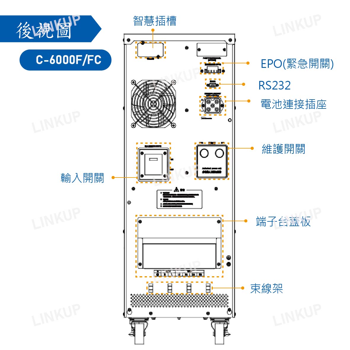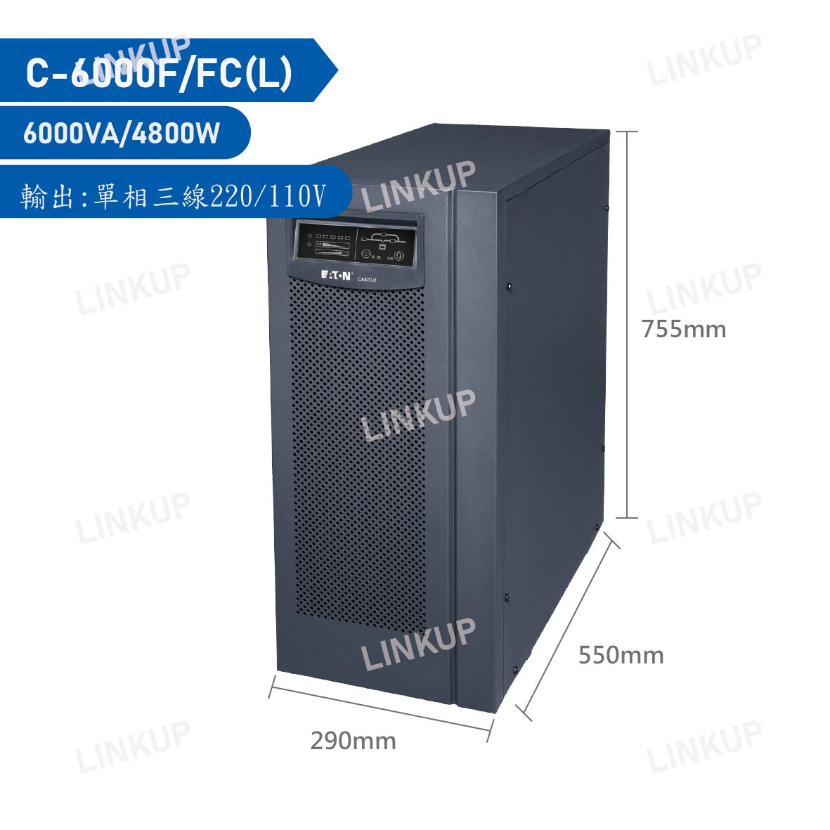 液晶中文UPS狀態及操作指引,輸入電壓、頻率,輸出電壓、電流、頻率、輸出功率、電池電壓、電池容量、後備時間、故障與狀態顯示警告…等