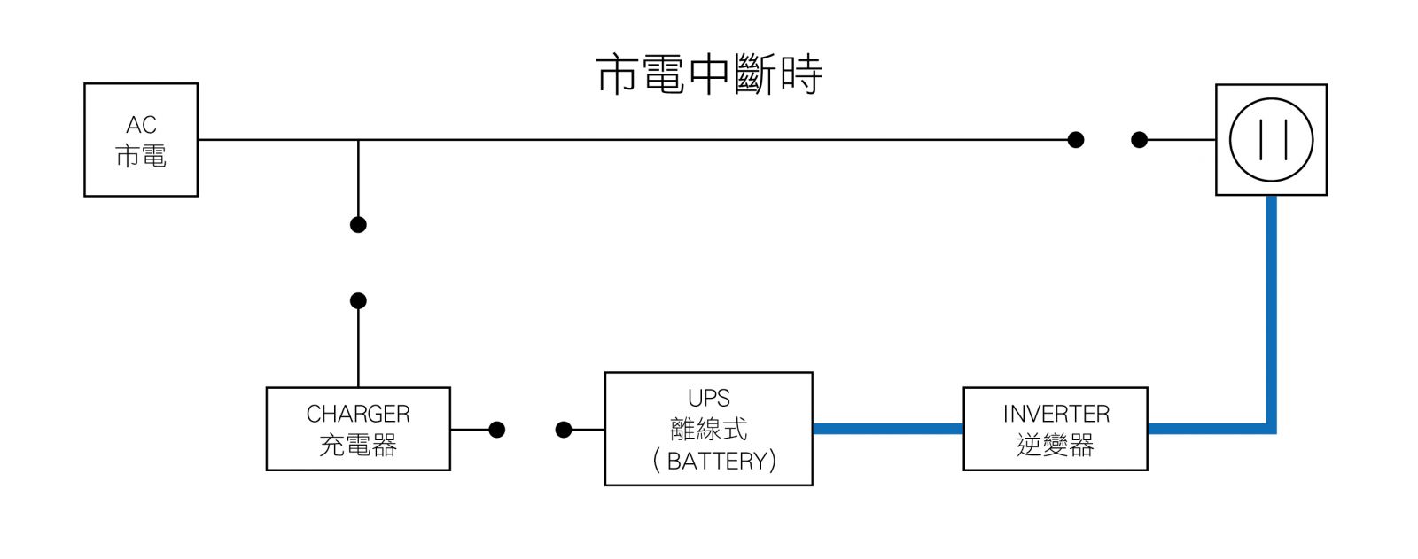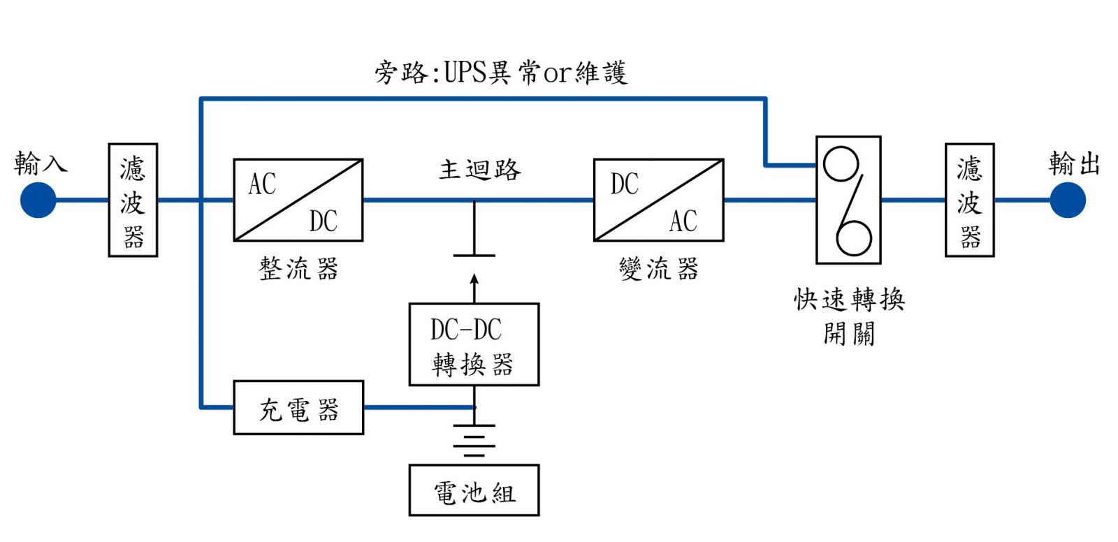 UPS 可執行三個主要功能:優化並淨化市電,確保輸出潔淨且穩定的電源;在市電發生電壓驟降或瞬間停電時,持續供電以維持設備運作;以及於完全斷電的情況下,提供充裕時間執行系統的安全關機程序。